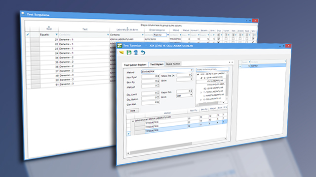 T.C. ÇEVRE ve ŞEHİRCİLİK BAKANLIĞI ve T.C. GIDA TARIM VE HAYVANCILIK BAKANLIĞI standartlarında test tanımlama seçenekleri